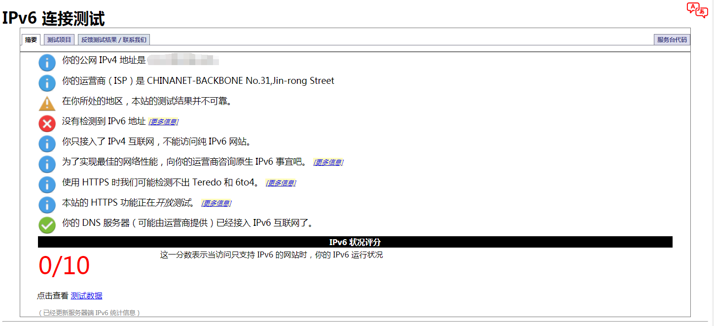 检测地址(ipv6连接地址):https://test-ipv6.com/